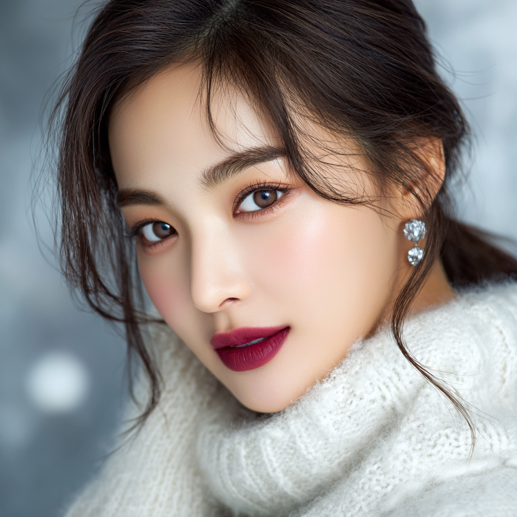 눈두덩 중앙에 미세한 펄을 톡 얹으면 눈이 반짝이며 겨울 햇살처럼 은은한 포인트가 돼요. 너무 과하지 않게, ‘눈이 살짝 반짝이는 느낌’을 기억하세요. ❄️